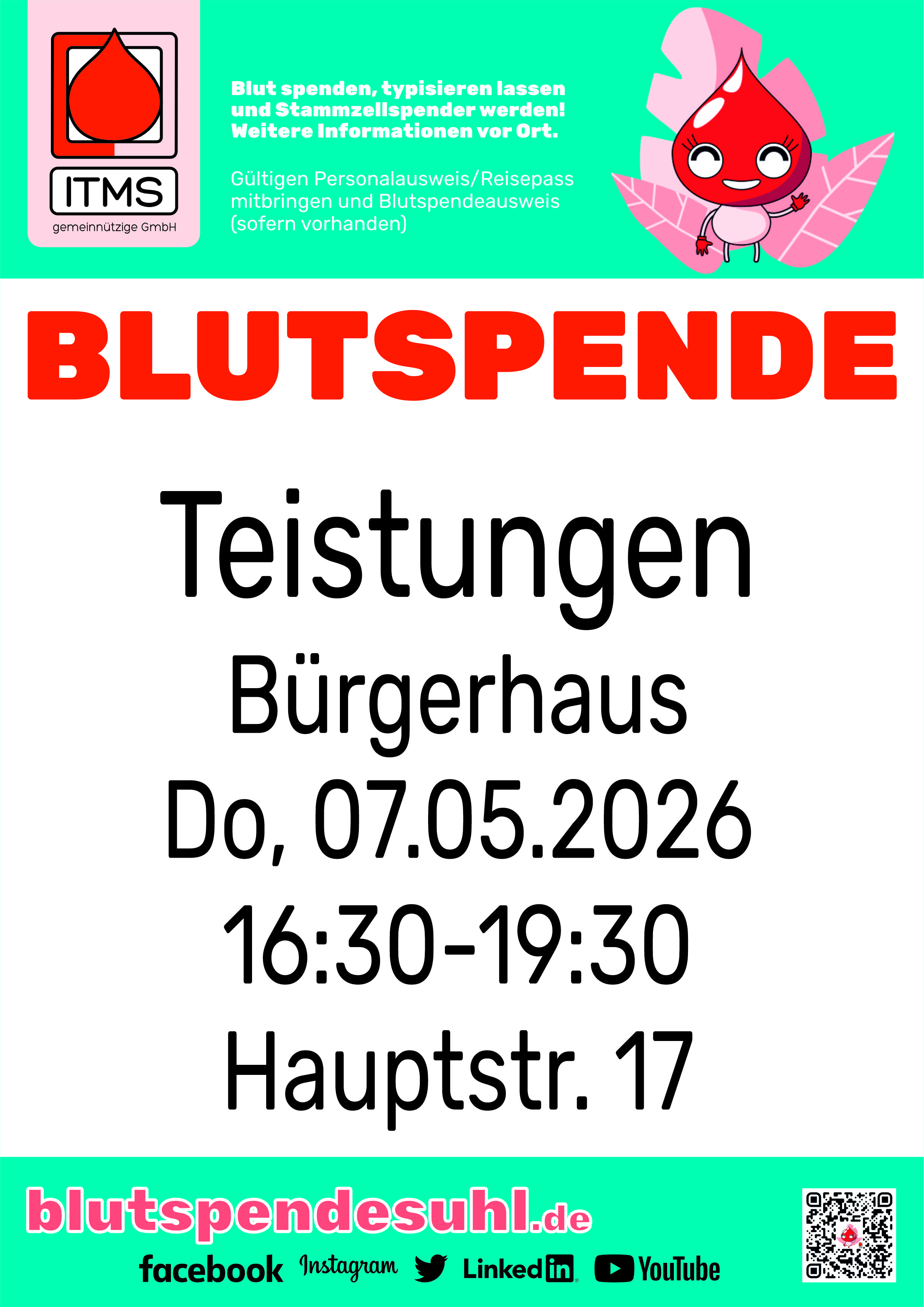 Blutspende in Teistungen am 07.05.2026